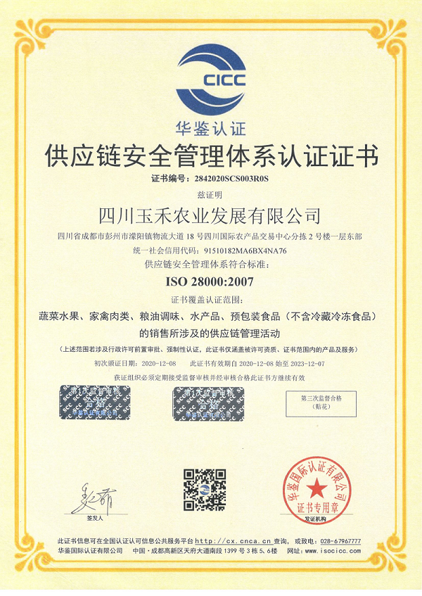 供應(yīng)鏈安全管理體系認(rèn)證證書