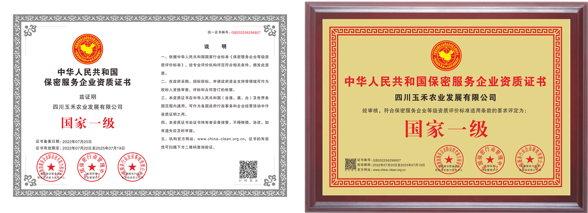 國(guó)家一級(jí)保密服務(wù)企業(yè)證書